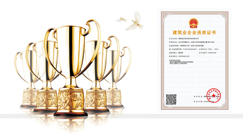 湖南省正陽光電科技有限公司是一家從事亮化工程及大型燈光藝術(shù)的設(shè)計(jì)、制作、安裝和維護(hù)于一體的專業(yè)化公司。公司資質(zhì)齊全、管理嚴(yán)謹(jǐn)、技術(shù)先進(jìn)、實(shí)力雄厚,取得了城市及道路照明工程專業(yè)承包壹級資質(zhì)、照明工程設(shè)計(jì)專項(xiàng)甲級資質(zhì)、機(jī)電工程施工總承包貳級資質(zhì)、施工勞務(wù)等資質(zhì)、國家高新技術(shù)企業(yè)、國家“重質(zhì)量·守誠信”示范企業(yè)。